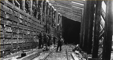 Building a snow tunnel through the Roger's Pass, near Revelstoke, B.C.